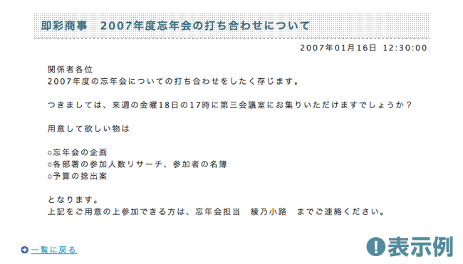 2007年1月20日と入力→すぐに公開されず、2007年1月20日になると内容が自動的に公開されます。